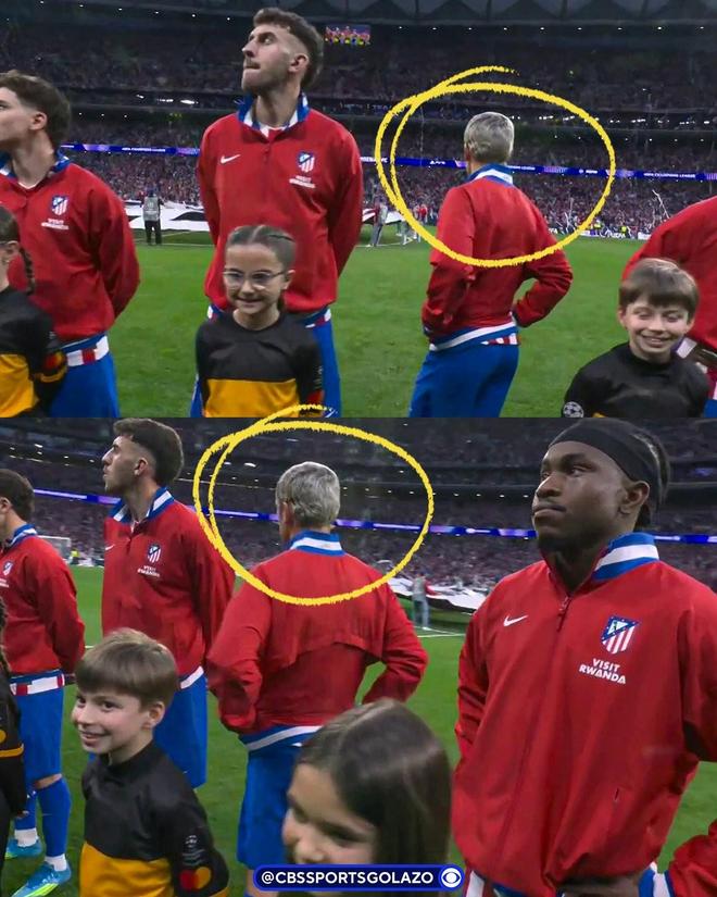 不舍,格列兹曼欧冠赛前列队时背转身去,深情凝望马竞主场和球迷